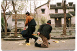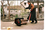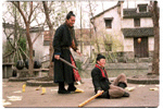 通过细心的观察,我们发现在这批“九连环”的剧照中,好象反映了一段精彩的故事情节,我们不妨去虚拟一下这段故事,为赵薇、伟仔两兄妹设计一下精彩对白,看看我们的编剧水平是否能与刘大导演比一高下。