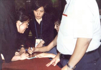 本次活动赞助方掌门网公司高层为获奖的观众颁奖 |